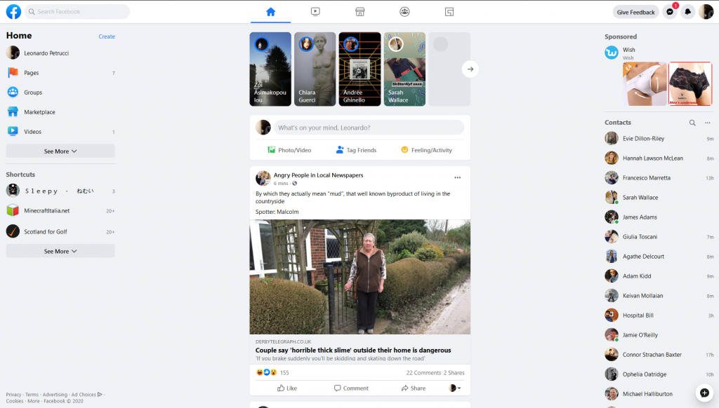 The Facebook homepage design prior to 2020.